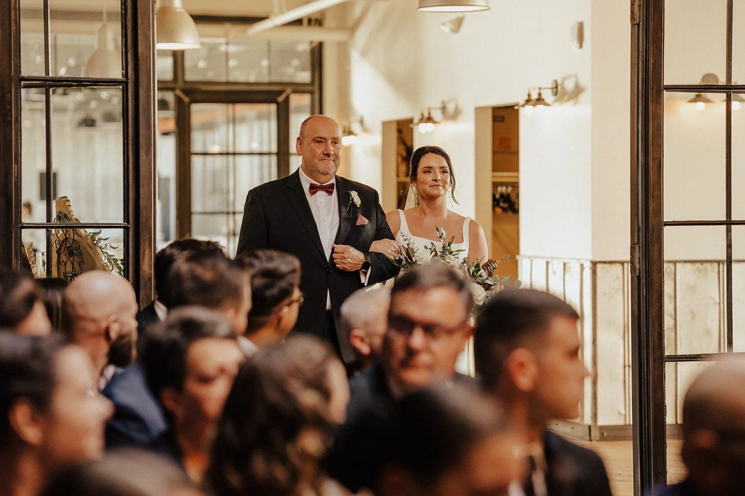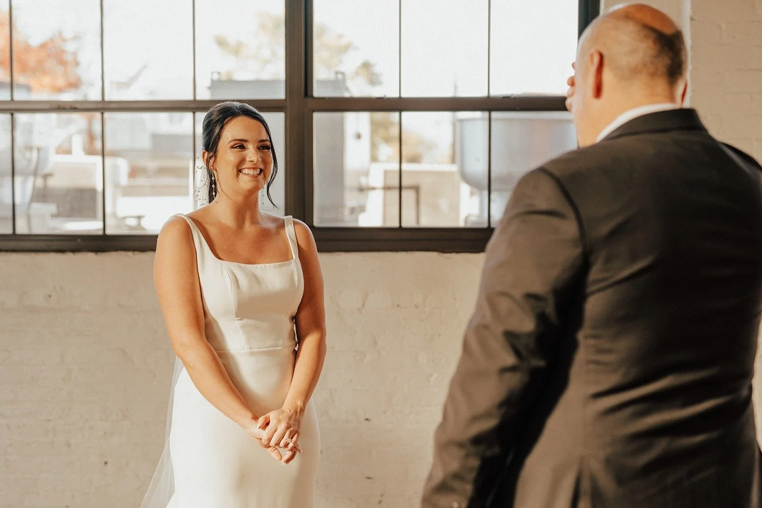 Kimberly and Zack’s October wedding at Accelerator Space in Baltimore, Maryland was the definition of timeless simplicity. Set inside the venue’s striking industrial space, their understated decor allowed the architecture and their connection to take center stage! A beautifully intentional celebration that felt modern yet effortless.
